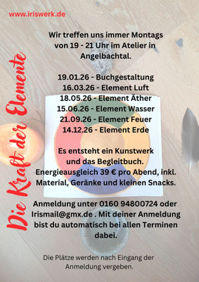 Zusätzlich zu den Treffen im Atelier gibt es eine WhatsApp-Gruppe, die ich mit Inspiration fülle und die für gegenseitigen Austausch genutzt werden kann. Wenn du dich für einen Kurs anmeldest, bist du automatisch für alle Termine eingebucht. Die Kurs bleiben über das Jahr geschlossen.
